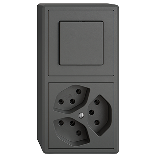 EDIZIO.liv •  Combinazione •  Verticale •  Pulsante spento/invertitore 3/1 L - Presa tripla tipo 13 •  Sistema de fissagio SNAPFIX® •  Altezza 59 mm •  GX.54.A •  grigio scuro •  IP20 •  140 x 74 mm