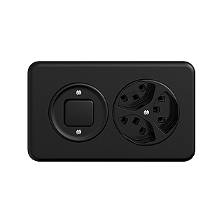 STANDARDdue (SNAPFIX) • Set di copertura • Per presa tripla tipo 23 • Senza placca di copertura • Disco frontale 60 mm, per ritaglio 58 mm • nero