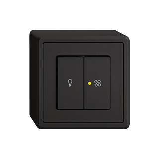 EDIZIO.liv • Abdeckset • Für Druckschalter Licht und Ventilatoren • Mit 2 Druckknöpfen • Mit Frontlinse • Ohne Abdeckrahmen • schwarz