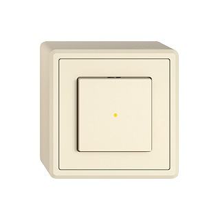 EDIZIO.liv • Druckschalter • Beleuchtet • Mit Frontlinse • 16 A, 230 V AC • Mit Steckklemmen • LED-Last max: 200 W • Kreuz • 6/1 L • Mit LED Gelb 1,0 mA • Orientierungs- oder Kontrollbeleuchtung • SNAPFIX® Befestigungssystem • Anbauhöhe 58 mm • GX.54.A • crema • IP20 • 74 x 74 mm