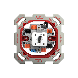 Il sistema di fissaggio in due fasi Feller SNAPFIX® riduce il lavoro di progettazione, ordinazione e installazione grazie a un ritaglio unitario simmetrico nella placca di fissaggio e all'adattatore rosso sull'unità funzionale. Quest'ultimo viene inserito a scatto (SNAP) nella placca di fissaggio e poi i quattro fermi agli angoli vengono fissati (FIX) in posizione con il cacciavite n.2. Feller SNAPFIX® ha un design modulare ed è adatto a tutte le funzioni Feller.