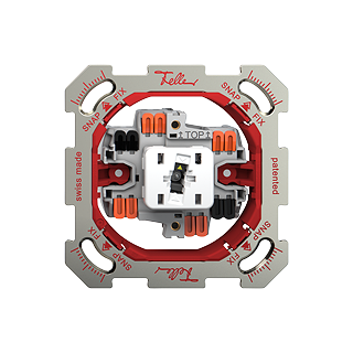 Il sistema di fissaggio in due fasi Feller SNAPFIX® riduce il lavoro di progettazione, ordinazione e installazione grazie a un ritaglio unitario simmetrico nella placca di fissaggio e all'adattatore rosso sull'unità funzionale. Quest'ultimo viene inserito a scatto (SNAP) nella placca di fissaggio e poi i quattro fermi agli angoli vengono fissati (FIX) in posizione con il cacciavite n.2. Feller SNAPFIX® ha un design modulare ed è adatto a tutte le funzioni Feller.