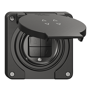 Copertura con coperchio ribaltabile per interruttore per tapparelle • Con guarnizione nera • Scrivi per comando a 4 tasti • Ritaglio 53 mm • nero
