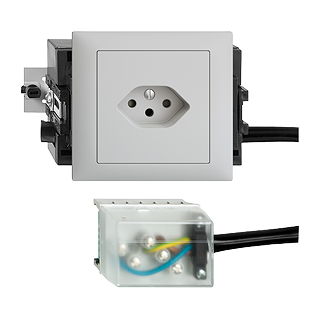 Presa semplice tipo 13 • 10 A, 250 V AC, L + N + PE • Raccordo su L2 • Con scatola ad incasso • Con bloccaggio rotativo • Altezza di montaggio 53 mm • FKE53 • grigio chiaro • IP20 • 80 x 130 mm • Con adattatore per cavo Ecobus power