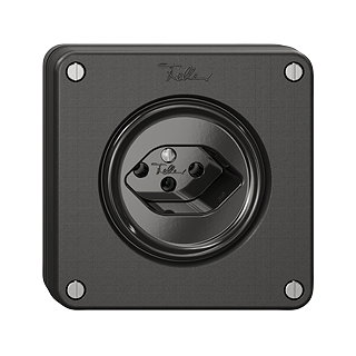 Presa semplice tipo 13 • 10 A, 250 V AC, L + N + PE • Con morsetti a innesto • Disco frontale 53 mm, per ritaglio 53 mm • Profondità 32 mm • NUPU.Q • nero • IP21 • 87 x 87 mm