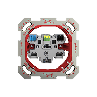 Il sistema di fissaggio in due fasi Feller SNAPFIX® riduce il lavoro di progettazione, ordinazione e installazione grazie a un ritaglio unitario simmetrico nella placca di fissaggio e all'adattatore rosso sull'unità funzionale. Quest'ultimo viene inserito a scatto (SNAP) nella placca di fissaggio e poi i quattro fermi agli angoli vengono fissati (FIX) in posizione con il cacciavite n.2. Feller SNAPFIX® ha un design modulare ed è adatto a tutte le funzioni Feller.