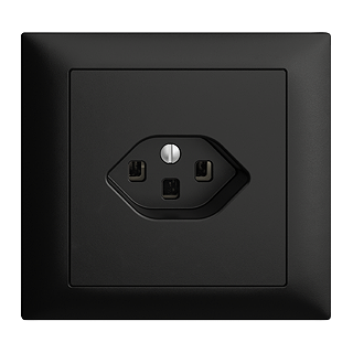 Einfach-Steckdose Typ 23 • 16 A, 250 V AC, L + N + PE • Mit Steckklemmen • Einbautiefe 41 mm • FKE • schwarz • IP20 • 80 x 86 mm