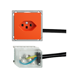 Einfach-Steckdose Typ 23 • 16 A, 250 V AC, L + N + PE • Mit Steckklemmen • Anschluss auf L3 • Einbautiefe 41 mm • FMTE • orange • IP20 • 70 x 70 mm