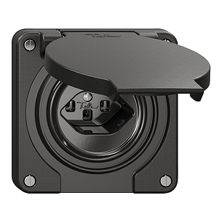 Presa semplice tipo 23 • 16 A, 250 V AC, L + N + PE • Con morsetti a innesto • Disco frontale 53 mm, per ritaglio 53 mm • Profondità 32 mm • N.CO.Q • nero • IP21 • 87 x 87 mm
