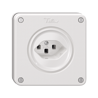 Prise simple type 23 • 16 A, 250 V AC, L + N + PE • Avec bornes enfichables • Disque frontale 53 mm, pour découpe 53 mm • Profondeur 32 mm • NU.CO.Q • blanc • IP21 • 87 x 87 mm