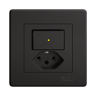 EDIZIO.liv • Kleinkombination • Beleuchtet • Mit Frontlinse • Mit Drucktaster und Steckdose Typ 13 • 10 A, 250 V AC, L + N + PE • Mit Steckklemmen • Schliesser-Öffner • 1 L • Mit LED Gelb 1,0 mA • Orientierungs- oder Kontrollbeleuchtung • SNAPFIX® Befestigungssystem • Einbautiefe 39 mm • GMI.A • schwarz • IP20 • 96 x 96 mm (93 x 93 mm)
