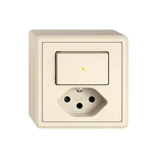 EDIZIO.liv • Kleinkombination • Beleuchtet • Mit Frontlinse • Mit Drucktaster und Steckdose Typ 13 • 10 A, 250 V AC, L + N + PE • Mit Steckklemmen • Schliesser-Öffner • 1 L • Mit Shutter • Mit LED Gelb 1,0 mA • Orientierungsbeleuchtung • SNAPFIX® Befestigungssystem • Anbauhöhe 58 mm • GX.54.A • crema • IP20 • 74 x 74 mm