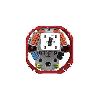 Kleinkombination • Beleuchtet • Mit Druckschalter und Steckdose Typ 13 • 10 A, 250 V AC, L + N + PE • Mit Steckklemmen • LED-Last max: 100 W • Kreuz • 6/1 L • Mit LED Rot 1,0 mA • Orientierungsbeleuchtung • SNAPFIX® Befestigungssystem • Einbautiefe 40 mm • BAE • farbneutral • IP20