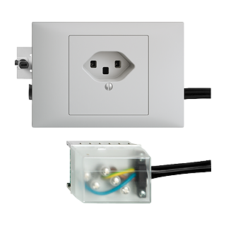 Presa semplice tipo 23 • 16 A, 250 V AC, L + N + PE • Con morsetti a vite • Raccordo su L1 • Con scatola ad incasso • Con bloccaggio rotativo • Altezza di montaggio 53 mm • BKE53 • grigio chiaro • IP20 • 80 x 130 mm • Con adattatore per cavo Ecobus power