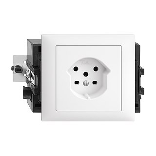 Prese tipo 15 • 10 A, 250 V AC, L + N + PE • 10 A, 440 V AC, 3 L + N + PE • Con morsetti a innesto • Con scatola ad incasso • Con bloccaggio rotativo • Altezza di montaggio 53 mm • FKE53 • bianco • IP20 • 80 x 130 mm
