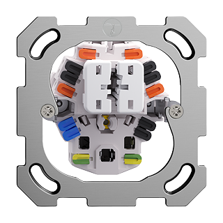 Piccola combinazione • Non illuminato • Con interruttore doppio e presa tipo 23 • 16 A, 250 V AC, L + N + PE • Con morsetti a innesto • Carico LED max: 200 W • Serie, invertitore-invertitore • 1/3+3/1 L • Per schema 3+3 togliere il collegamento standard • Profondità 40 mm • BSM • incolore • IP20 • 77 x 77 mm