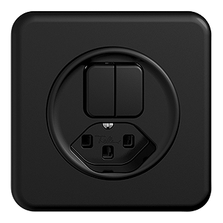 Piccola combinazione • Non illuminato • Con interruttore doppio e presa tipo 23 • 16 A, 250 V AC, L + N + PE • Con morsetti a innesto • Carico LED max: 200 W • Disco frontale 60 mm, per ritaglio 58 mm • Serie, invertitore-invertitore • 1/3+3/1 L • Per schema 3+3 togliere il collegamento standard • Profondità 39 mm • QMI • nero • IP20 • 90 x 90 mm
