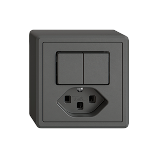 EDIZIO.liv • Piccola combinazione • Non illuminato • Con pulsante doppio e presa tipo 23 • 16 A, 250 V AC, L + N + PE • Con morsetti a innesto • Chiusura-apertura • 2 x 1 L • Sistema de fissagio SNAPFIX® • Altezza 58 mm • GX.54.A • grigio scuro • IP20 • 74 x 74 mm