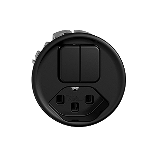 Piccola combinazione • Non illuminato • Con pulsante doppio e presa tipo 23 • 16 A, 250 V AC, L + N + PE • Con morsetti a innesto • Disco frontale 60 mm, per ritaglio 58 mm • Chiusura-apertura • 2 x 1 L • Profondità 39 mm • Q • nero • IP20 • Distanza di fissaggio 52 mm