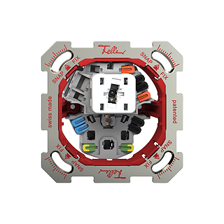 Il sistema di fissaggio in due fasi Feller SNAPFIX® riduce il lavoro di progettazione, ordinazione e installazione grazie a un ritaglio unitario simmetrico nella placca di fissaggio e all'adattatore rosso sull'unità funzionale. Quest'ultimo viene inserito a scatto (SNAP) nella placca di fissaggio e poi i quattro fermi agli angoli vengono fissati (FIX) in posizione con il cacciavite n.2. Feller SNAPFIX® ha un design modulare ed è adatto a tutte le funzioni Feller.
