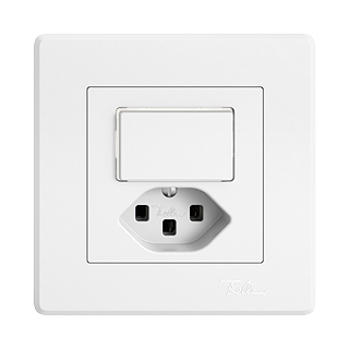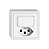 EDIZIO.liv • Piccola combinazione • Illuminato • Con lente laterale • Con pulsante e presa tipo 23 • 16 A, 250 V AC, L + N + PE • Con morsetti a innesto • Chiusura-apertura • 1 L • Con LED bianco 1,0 mA • Illuminazione d'orientamento o di controllo • Sistema de fissagio SNAPFIX® • Profondità 39 mm • GMI.A • bianco • IP20 • 96 x 96 mm (93 x 93 mm)