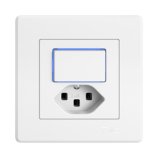 EDIZIO.liv • Piccola combinazione • Illuminato • Con lente laterale • Con interruttore e presa tipo 23 • 16 A, 250 V AC, L + N + PE • Con morsetti a innesto • Carico LED max: 200 W • Spento/invertitore • 3/1 L • Con LED blu 1,0 mA • Illuminazione d'orientamento • Sistema de fissagio SNAPFIX® • Profondità 39 mm • GMI.A • bianco • IP20 • 96 x 96 mm (93 x 93 mm)