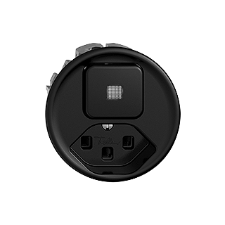 Piccola combinazione • Illuminato • Con lente frontale • Con interruttore e presa tipo 23 • 16 A, 250 V AC, L + N + PE • Con morsetti a innesto • Carico LED max: 200 W • Disco frontale 60 mm, per ritaglio 58 mm • Spento/invertitore • 3/1 L • Con LED giallo 1,0 mA • Illuminazione d'orientamento • Profondità 39 mm • Q • nero • IP20 • Distanza di fissaggio 52 mm