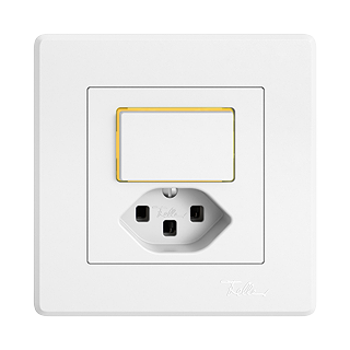 EDIZIO.liv • Piccola combinazione • Illuminato • Con lente laterale • Con interruttore e presa tipo 23 • 16 A, 250 V AC, L + N + PE • Con morsetti a innesto • Carico LED max: 200 W • Permutatore • 6/1 L • Con LED giallo 1,0 mA • Illuminazione di controllo • Sistema de fissagio SNAPFIX® • Profondità 39 mm • GMI.A • bianco • IP20 • 96 x 96 mm (93 x 93 mm)