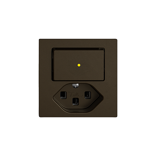 EDIZIO.liv • Piccola combinazione • Illuminato • Con lente frontale • Con interruttore e presa tipo 23 • 16 A, 250 V AC, L + N + PE • Con morsetti a innesto • Carico LED max: 200 W • Permutatore • 6/1 L • Con LED giallo 1,0 mA • Illuminazione d'orientamento • Sistema de fissagio SNAPFIX® • Profondità 39 mm • G.A • umbra • IP20 • 60 x 60 mm