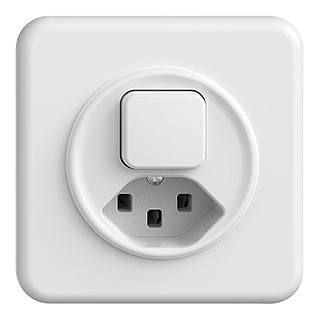 STANDARDdue (SNAPFIX) • Piccola combinazione • Non illuminato • Con interruttore e presa tipo 23 • 16 A, 250 V AC, L + N + PE • Con morsetti a innesto • Carico LED max: 200 W • Disco frontale 60 mm, per ritaglio 58 mm • Permutatore • 6/1 L • Illuminabili con LED e pulsante luminoso con lente • Sistema de fissagio SNAPFIX® • Profondità 39 mm • QMI.A • bianco • IP20 • 90 x 90 mm
