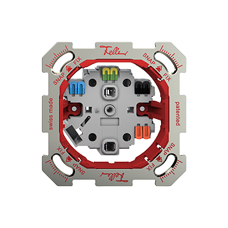 Il sistema di fissaggio in due fasi Feller SNAPFIX® riduce il lavoro di progettazione, ordinazione e installazione grazie a un ritaglio unitario simmetrico nella placca di fissaggio e all'adattatore rosso sull'unità funzionale. Quest'ultimo viene inserito a scatto (SNAP) nella placca di fissaggio e poi i quattro fermi agli angoli vengono fissati (FIX) in posizione con il cacciavite n.2. Feller SNAPFIX® ha un design modulare ed è adatto a tutte le funzioni Feller.