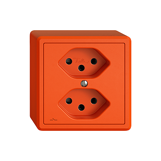 EDIZIO.liv • Presa doppia tipo 13 • 10 A, 250 V AC, L + N + PE • Con morsetti a innesto • 1 presa separata • Sistema de fissagio SNAPFIX® • Altezza 54 mm • GX.54.A • arancione • IP20 • 74 x 74 mm
