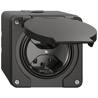 Presa doppia tipo 23 • 16 A, 250 V AC, L + N + PE • Con morsetti a innesto • Disco frontale 60 mm, per ritaglio 60 mm • Parallela • Altezza 70 mm • NAP.Q • nero • IP21 • 87 x 87 mm