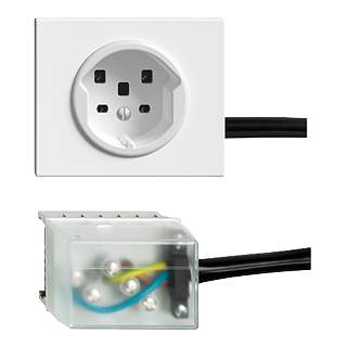 Steckdose Typ 25 • 16 A, 250 V AC, L + N + PE • 16 A, 440 V AC, 3 L + N + PE • Mit Schraubklemmen • Anschluss auf L1, L2, L3 • Mit Einlasskasten • Einbautiefe 48 mm • FLF6/5 • weiss • IP20 • 75 x 62,5 mm