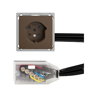 Prese tipo 25 • 16 A, 250 V AC, L + N + PE • 16 A, 440 V AC, 3 L + N + PE • Con morsetti a innesto • Raccordo su L1, L2, L3 • Profondità 40 mm • FMTE • coffee • IP20 • 70 x 70 mm