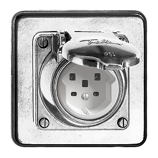 Prese tipo 25 • 16 A, 250 V AC, L + N + PE • 16 A, 440 V AC, 3 L + N + PE • Con morsetti a vite • Profondità 22 mm • GUP • alluminio • IP54 • 106 x 106 mm