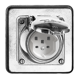 Prese tipo 25 • 16 A, 250 V AC, L + N + PE • 16 A, 440 V AC, 3 L + N + PE • Con morsetti a innesto • Profondità 22 mm • GUP • alluminio • IP54 • 106 x 106 mm
