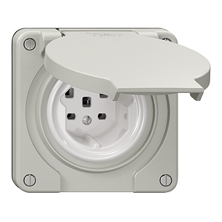 Prese tipo 25 • 16 A, 250 V AC, L + N + PE • 16 A, 440 V AC, 3 L + N + PE • Con morsetti a innesto • Disco frontale 53 mm, per ritaglio 53 mm • Profondità 31 mm • N.CO.Q • grigio chiaro • IP21 • 87 x 87 mm