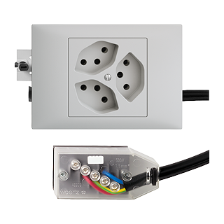 Presa tripla tipo 13 • 10 A, 250 V AC, L + N + PE • Raccordo su L2 • Parallela • FMTE • Con adattatore per cavo Technofil • grigio chiaro