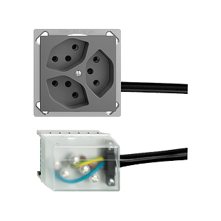 Presa tripla tipo 13 • 10 A, 250 V AC, L + N + PE • Raccordo su L3 • Parallela • Profondità 41 mm • FMTE • grigio scuro • IP20 • 70 x 70 mm • Con adattatore per cavo Ecobus power
