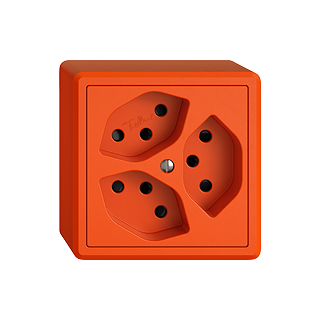 EDIZIO.liv • Presa tripla tipo 13 • 10 A, 250 V AC, L + N + PE • Con morsetti a innesto • Parallela • Con otturatore • Sistema de fissagio SNAPFIX® • Altezza 54 mm • GX.54.A • arancione • IP20 • 74 x 74 mm