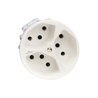 Presa tripla tipo 13 • 10 A, 250 V AC, L + N + PE • Con morsetti a innesto • 1 presa separata • Profondità 40 mm • P • bianco • IP20 • Distanza di fissaggio 52 mm