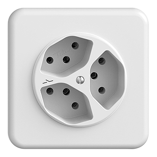 Presa tripla tipo 13 • 10 A, 250 V AC, L + N + PE • Con morsetti a innesto • Disco frontale 60 mm, per ritaglio 58 mm • 1 presa separata • Profondità 36 mm • QMI • bianco • IP20 • 90 x 90 mm