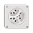 Presa tripla tipo 23 •  16 A, 250 V AC, L + N + PE •  Con morsetti a innesto •  Disco frontale 60 mm, per ritaglio 60 mm •  Parallela •  Profondità 32 mm •  NUPU.Q •  bianco •  IP21 •  87 x 87 mm