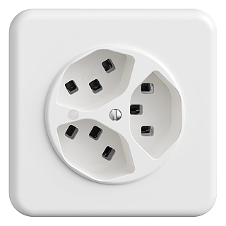 STANDARDdue (SNAPFIX) • Presa tripla tipo 23 • Illuminato • 16 A, 250 V AC, L + N + PE • Con morsetti a innesto • Illuminazione d'orientamento / indicatore di tensione • Con LED verde 1,0 mA • Disco frontale 60 mm, per ritaglio 58 mm • Parallela • Sistema de fissagio SNAPFIX® • Profondità 39 mm • QMI.A • bianco • IP20 • 90 x 90 mm
