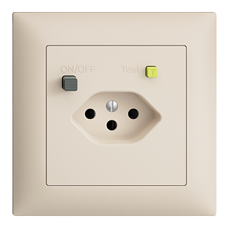 Presa di protezione a corrente di difetto tipo 13 • 10 A, 250 V AC, L + N + PE • Corrente di sgancio 30 mA • Con morsetti di collegamento per altre prese • Profondità 40 mm • FMI • crema • IP20 • 88 x 88 mm