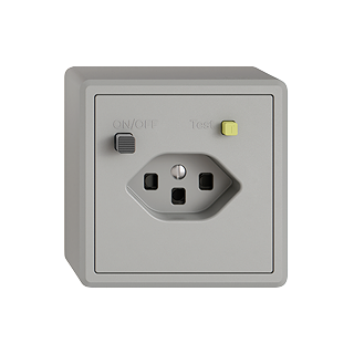 EDIZIO.liv • Fehlerstrom-Schutzsteckdose Typ 23 • 16 A, 250 V AC, L + N + PE • Auslösestrom 30 mA • Mit Anschlussklemmen für weitere Steckdosen • Bajonett Befestigungssystem • Mit Shutter • Anbauhöhe 63 mm • GX.54 • hellgrau • IP20 • 74 x 74 mm