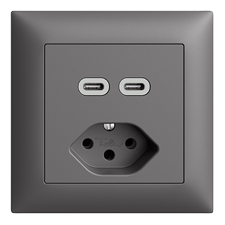 Abdeckset • Für USB C+C/T13 Kombination • 2 USB-Anschlüsse Typ C • Mit Abdeckrahmen • FMI • dunkelgrau
