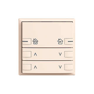Motore 2 canali • Set di copertura zeptrionAIR • I tasti smart in alto permettono di utilizzare interruttore orario tramite zeptrionAIR rete wireless • Tasti inferiori per motore 2 canale • Il set di copertura zeptrionAIR viene montato sul modulo wireless intermedio zeptrion 2K (3340-2-B.ZEP) e sull'inserto funzionale zeptrion Motore 2 canale 3305 o l'inserto funzionale stazione centrale/seconda • Con RGB LED • Tasto triplo • Comando 2x • Interruttore orario zeptrionAIR su 2 tasti smart
