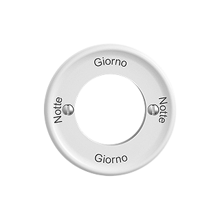 STANDARDdue (SNAPFIX) • Abdeckset • Für Drehschalter mit Sicherheitsschloss • Beschriftung Notte - Giorno - Notte - Giorno • Ohne Abdeckplatte • Frontscheibe 60 mm, für Bohrung 58 mm • Q.A (920-, 60) • weiss • IP20